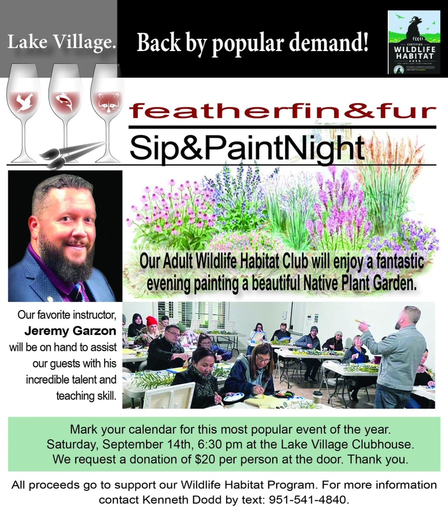 Lake Village Clubhouse 30151 Rancho Vista Road, TemeculaLast year’s event was a huge success as members spent a fun filled evening under the tutelage of Jeremy Garzon producing beautiful paintings of Lake Village. This event is a...